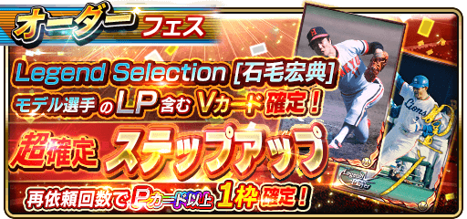 【Legend Selection [石毛宏典]】オーダーを使用し、モデル選手(投手)を2人以上起用すると発動。チーム全体の打撃力と投手力がかなり抜群にアップする。発動対象人数が2人増える毎にチーム全体の投手力がさらに超抜群にアップする。